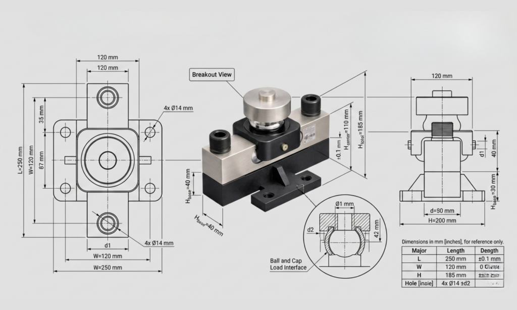 • Self-aligning cap & ball mechanism for accurate load transfer